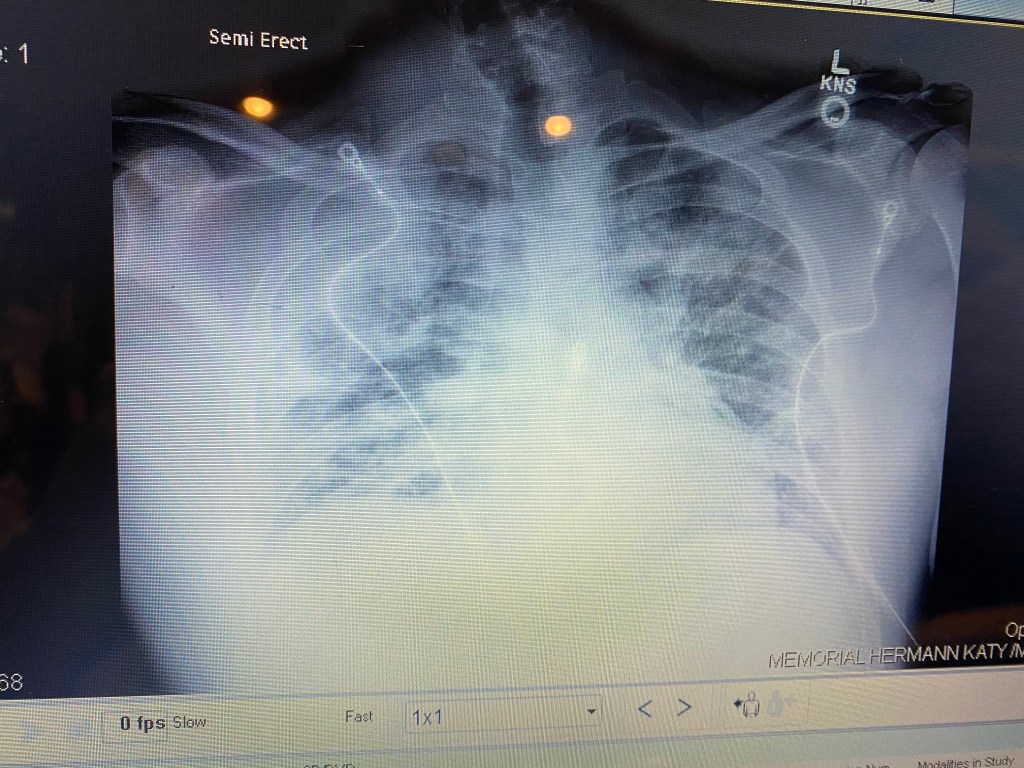 Within a couple of days, my oxygen requirements increased to 15 liters and I started to wear a nonrebreather mask in addition to the nasal cannula I had been wearing the last few days. Even at the maximum supplemental oxygen, my blood saturation nosedived to 56 percent, which is a level dangerous to all of the organs in the body. It was at that point, the doctor came in and gave me a report that changed my life. He said that in my current state, he gave me a 50 percent chance of survival, but if my oxygen levels did not stabilize, over the next 12 hours, he would have to intubate me, at which point my chance of survival diminished to 25 percent.